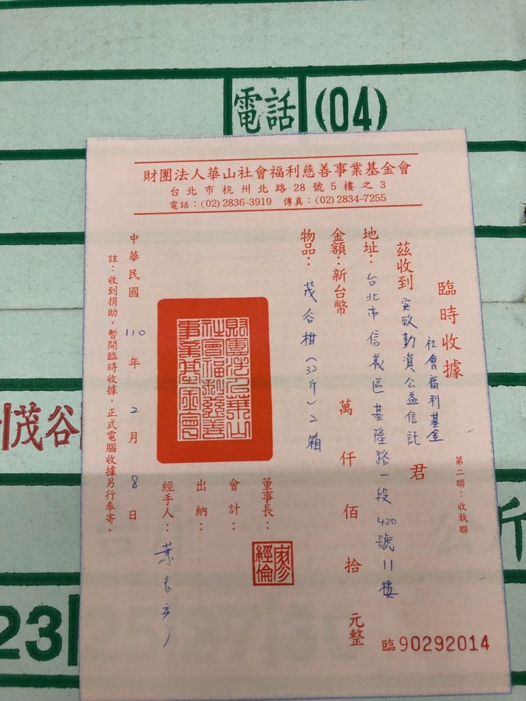 捐血活動當天剩餘的禮盒轉送給苗栗地區的失親兒基金會服務處以及華山基金會愛心天使站。